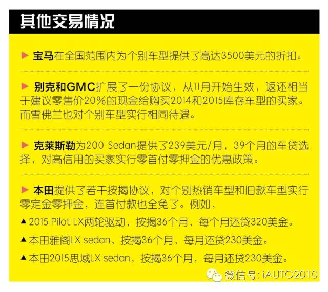 去年车市需求旺盛,各家车企对2015年都充满了信心。原因诸多:有利的融资条件、家庭收入提高、就业率提高、新车型及升级车型的推出、油价暴跌等等,这些都促使更多的美国买家昂首挺进车销展厅。