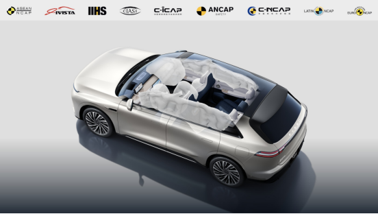 车内设计副驾125升超大体积气囊+2368mm长侧气帘,实现乘员舱全覆盖,有效避免二次伤害,而车内隐藏式门把手历经上千次实车模拟测试,可在10-20毫秒自动弹出解锁,搭配前后车门内护板地图袋后侧应急机械开关,确保碰撞后车门可快速开启,为乘员提供双重逃生保障。