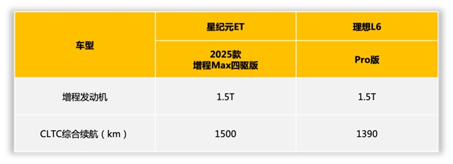 理想L6 Pro版同样搭载了一台1.5T增程发动机,CLTC综合续航1390公里,相比星纪元ET少110公里。看似差距不大,但对于跨省长途自驾而言,星纪元ET的续航冗余更能应对突发路况。